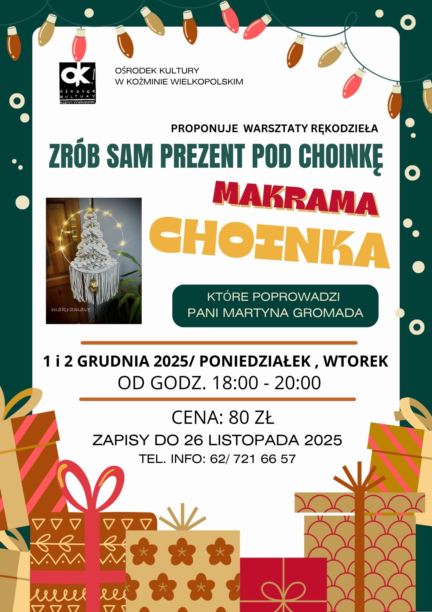 CENA: 80 ZŁ ZAPISY DO 26 LISTOPADA 2025 TEL. INFO: 62/ 721 66 57