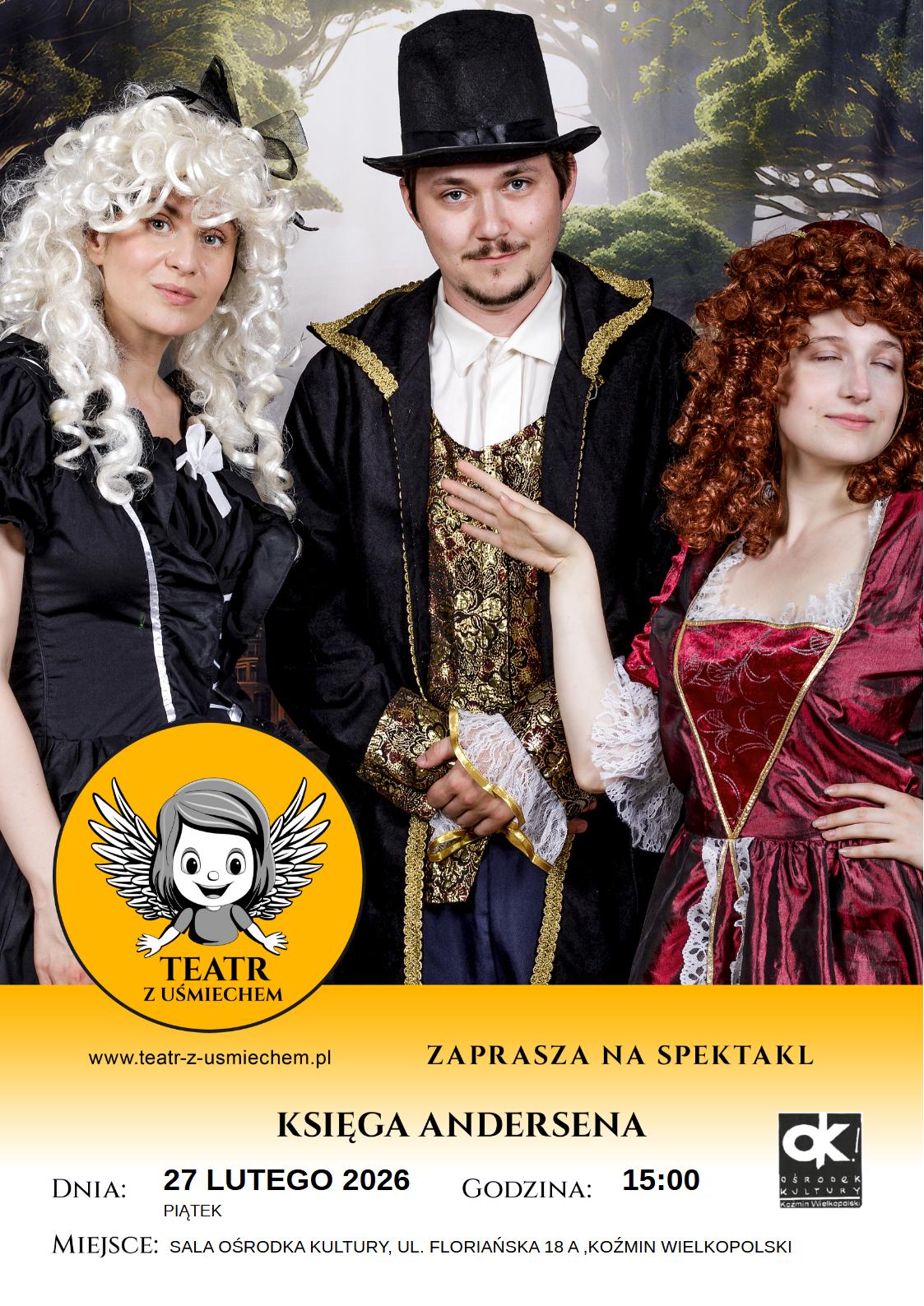 27 LUTEGO PIĄTEK GODZ. 15:00 TEATR Z UŚMIECHEM: „KSIĘGA ANDERSENA" SALA OŚRODKA KULTURY, UL. FLORIAŃSKA 18 A FILM: