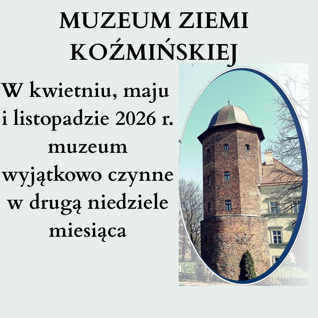 W kwietniu, maju i listopadzie 2026 r. muzeum wyjątkowo czynne w drugą niedzielę miesiąca.