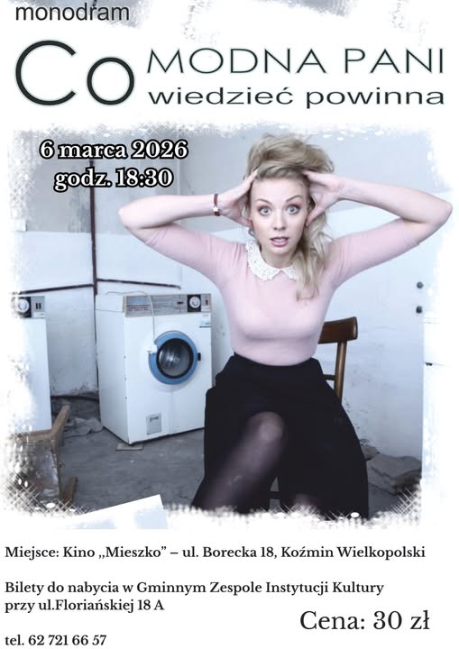 godz. 18.30 -,,Co modna pani wiedzieć powinna"- monodram Katarzyny Kołeczek, kino "Mieszko" ul.Borecka 18